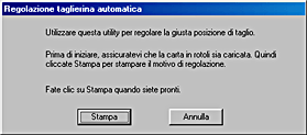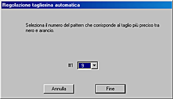 Fare clic su Regolazione taglierina automatica. Viene visualizzata la finestra di dialogo Regolazione taglierina automatica.