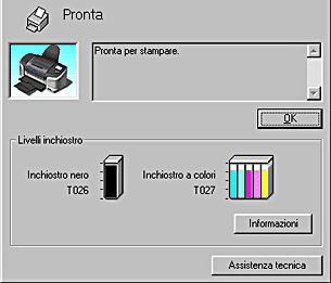 La finestra di dialogo Barra di avanzamento appare automaticamente quando si invia un lavoro di stampa alla stampante. Da questa finestra di dialogo è possibile controllare la quantità di inchiostro rimanente.