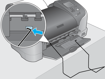 Inserire la punta sinistra nel foro sinistro situato sul pannello anteriore della stampante.