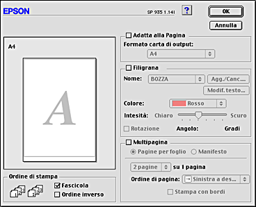 La selezione della casella di controllo Multipagina consente di scegliere tra le impostazioni Pagine per foglio e Manifesto.