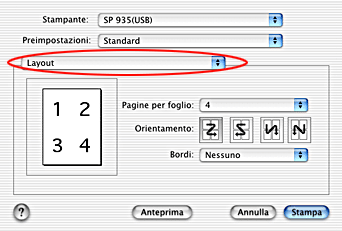 Selezionare Layout dal menu a comparsa come impostazione multipagina per stampare pagine multiple del documento su un singolo foglio di carta.