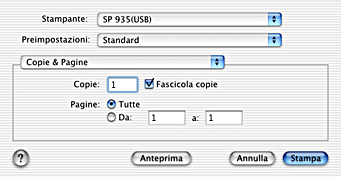 Selezionare Copie & Pagine dal menu a comparsa e immettere il numero di copie desiderato per la stampa nella casella di testo Copie.