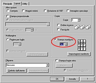 Per la stampa di un manifesto, definire le impostazioni che seguono.