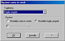 Effettuare le impostazioni di Opzioni nella finestra di dialogo Opzioni carta in rotoli.