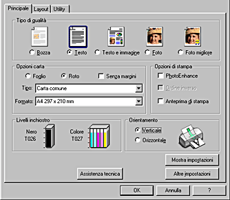 Dopo aver caricato la carta in rotolo nella stampante, assicurarsi di selezionare EPSON Stylus Photo 935 in Scelta risorse prima di procedere. Eseguire le operazioni indicate di seguito per configurare il software della stampante.