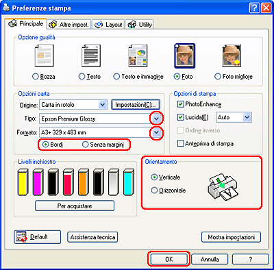 Impostazioni della stampante per WindowsPer regolare le impostazioni della stampante, effettuare i passaggi che seguono.