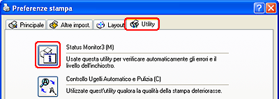 Aprire il driver della stampante, fare clic sulla scheda Utility, quindi fare clic sul pulsante Status Monitor 3.