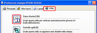 Aprire il driver della stampante, fare clic sulla scheda Utility, quindi fare clic sul pulsante Status Monitor 3.