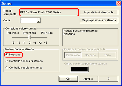 Assicurarsi che EPSON Stylus Photo R300 Serie sia l'impostazione del tipo di stampante.