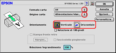 Selezionare Stylus Photo R300 come impostazione di Stampante.