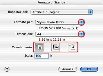 Selezionare Stylus Photo R300 come impostazione di Formato per.