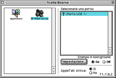Scegliere Scelta Risorse dal menu Apple, fare clic sull'icona della propria stampante, quindi selezionare la porta alla quale è collegata la stampante.