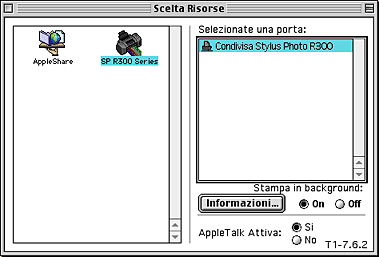 Per condividere una stampante con altri computer connessi a una rete AppleTalk, eseguire le operazioni indicate di seguito per configurare il computer a cui la stampante è collegata direttamente.
