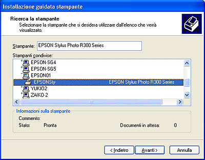 Per monitorare lo stato di una stampante condivisa, è necessario installare EPSON Status Monitor 3 su ciascun computer. EPSON Status Monitor 3 viene automaticamente installato quando si installa il software della stampante per la prima volta.
