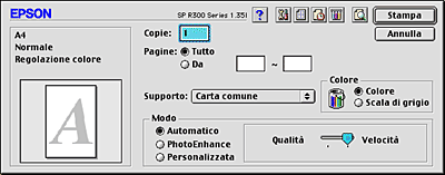 Quando è selezionato il modo Automatico, il software della stampante definisce automaticamente tutte le impostazioni dettagliate in base a quelle correnti di Supporto e Inchiostro.