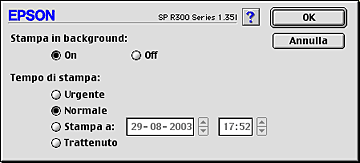 ![]() | Selezionare Urgente, Normale, Stampa a o Trattenuto come impostazione di Tempo di stampa. |