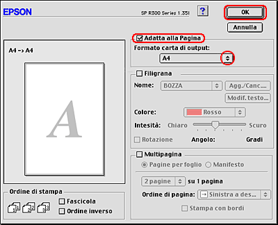 Per chiudere la finestra di dialogo delle impostazioni del driver della stampante, fare clic su OK.