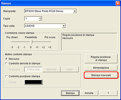 Per informazioni dettagliate, vedere la Guida di EPSON Print CD. Per controllare la posizione di stampa, è inoltre possibile utilizzare il foglio di controllo della posizione di stampa su CD/DVD fornito con questo prodotto.