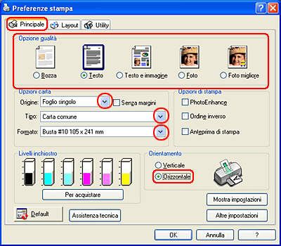 L'impostazione Economy presente in Opzioni carta e qualità nel menu Altre impostazioni non è disponibile quando si stampa su buste.