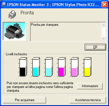 ![]() | Fare clic sul pulsante EPSON StatusMonitor. Viene visualizzata la finestra di dialogo EPSON StatusMonitor. |