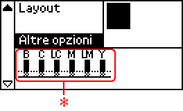 nel modo Avanzato per scorrere fino a visualizzare Altre opzioni. Le icone di controllo inchiostro vengono visualizzate sotto Altre opzioni sul display LCD.