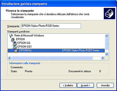 Accesso alla stampante attraverso una rete