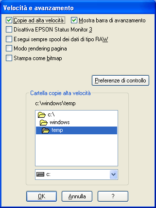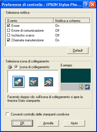 Fare clic su questo pulsante per aprire la finestra di dialogo Preferenze di controllo, in cui è possibile definire impostazioni per EPSON Status Monitor 3.