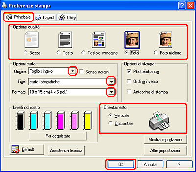 Per ulteriori impostazioni di stampa, fare clic sul pulsante Altre impostazioni. Per ulteriori informazioni, fare clic sul pulsante ?.