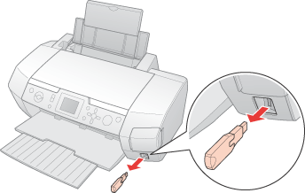 Non rimuovere l'adattatore durante la comunicazione con un altro dispositivo o durante il funzionamento della stampante. Altrimenti, possono verificarsi funzionamenti difettosi della stampante. Non rimuovere l'adattatore tirandone la sezione superiore, al fine di non danneggiarlo.