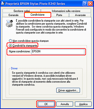 Configurazione della stampante come stampante condivisa