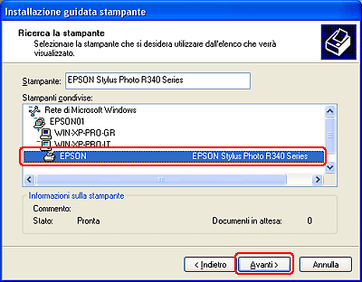 In queste istruzioni viene descritto come configurare la stampante in modo da poterla condividere con altri utenti della rete.
