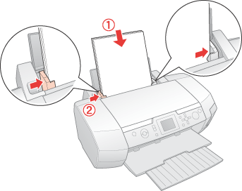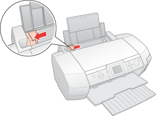 Caricare la carta con il lato stampabile rivolto verso l'alto, pareggiandola contro il lato destro dell'alimentatore. Quindi, spostare la guida laterale sinistra contro il bordo sinistro della carta evitando di premere eccessivamente.