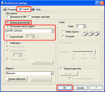 Fare clic sulla scheda Layout, quindi selezionare la casella di controllo Stampa proporzionale.