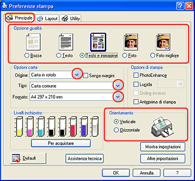 Effettuare l'impostazione appropriata di Opzione carta in rotoli.