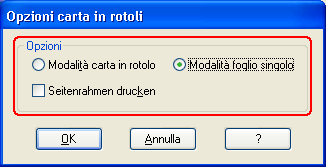 Effettuare le impostazioni appropriate di Opzioni nella finestra di dialogo Opzioni carta in rotolo.