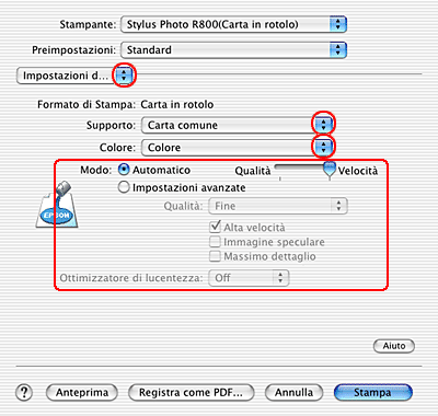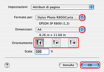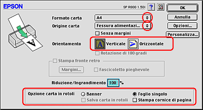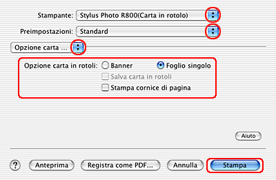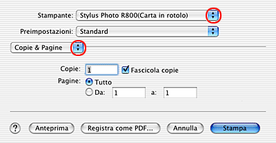 Selezionare Stylus Photo R800(Carta in rotolo) come impostazione di Formato per.