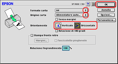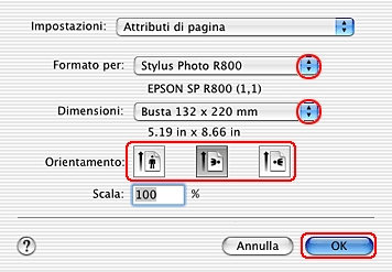 Selezionare Stylus Photo R800 come impostazione di Formato per.