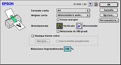 Selezionare il formato della carta da usare. È possibile inoltre aggiungere un formato carta personalizzato. Per aggiungere un'impostazione personalizzata di formato carta, vedere la sezione che segue.