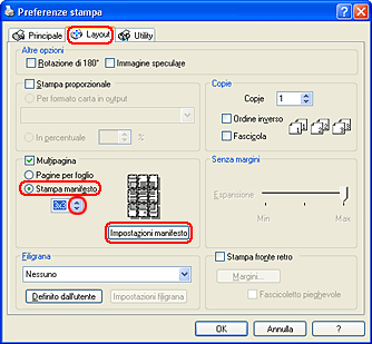 Nella finestra di dialogo Layout, selezionare la casella di controllo Multipagina, quindi selezionare Manifesto.