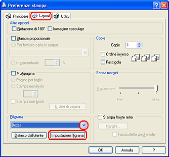 La stampa con filigrana permette di stampare sul documento una filigrana di tipo testo o immagine.