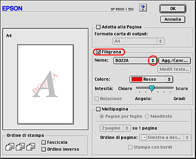 Stampa di filigrane per Mac OS da 8.6 a 9.x