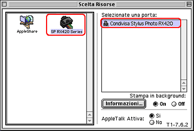Sono disponibili solo le stampanti connesse alla propria zona AppleTalk corrente.
