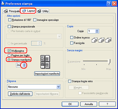 Permette di stampare immagini dal formato manifesto; a tal fine, una pagina viene ingrandita per coprire un certo numero di fogli.