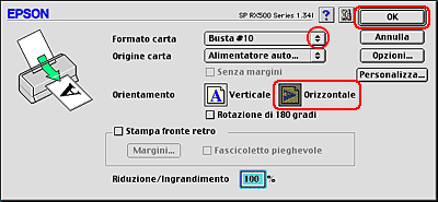 Selezionare il formato busta appropriato come impostazione di Dimensioni.