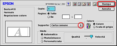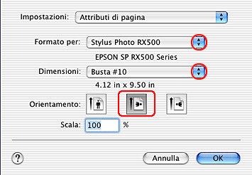 Selezionare Stylus Photo RX500 come impostazione di Formato per.