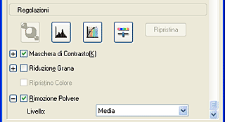 Rimozione polvere è una funzione del software dello scanner che consente di eliminare la polvere delle pellicole.