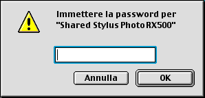 Utilizzare l'impostazione di condivisione stampante, presente come funzione standard in Mac OS X 10.2 o versione successiva. Questa funzione non risulta disponibile con Mac OS X 10.1.