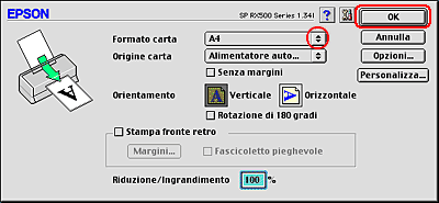 ![]() | Selezionare Stylus Photo RX500 come impostazione di Formato per. |
