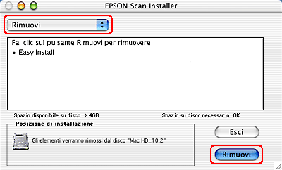 Disinstallazione di EPSON Scan in Mac OS X