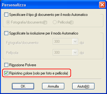 Per ripristinare i colori utilizzando EPSON Scan, effettuare i passaggi che seguono: